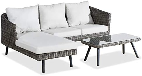 Une vue exceptionnelle un soleil radieux un ciel dun bleu idyllique et pour en profiter un ensemble aux lignes modernes. Propose dans 2 couleurs blanc ou taupe il presente un design tendance avec des lignes pures et aeriennes. Salon de jardin samoa.