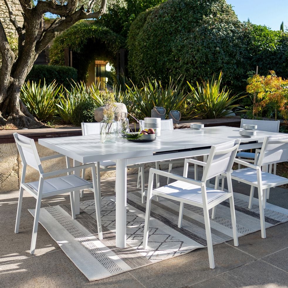 Table de jardin extensible 180 240 cm avec 2 fauteuils et 4 chaises gris 20 382 99 319 16 ht. Des larrivee des beaux jours nos tables de jardin et chaises de jardin redeviennent indispensables pour votre exterieur. Oubliez le salon de jardin et optez pour une intemporelle table de jardin pliante en bois accompagne de chaises de jardin en bois pliantes et ainsi preserver votre espace de vie exterieur.