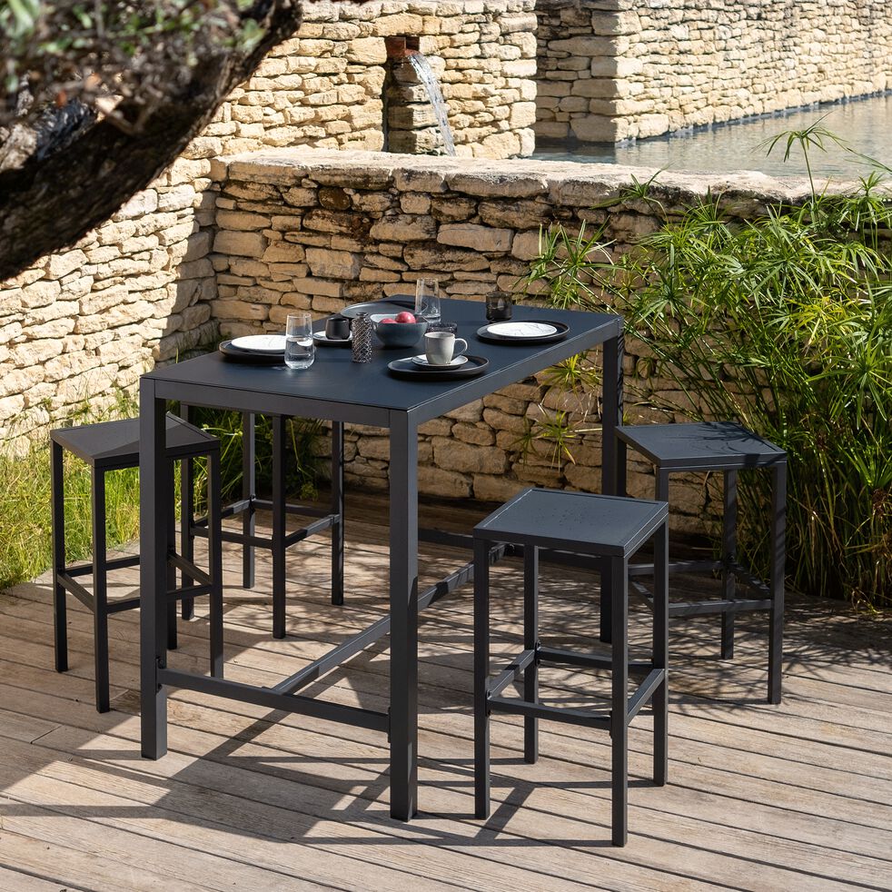 Ensemble Table Haute 6 Places En Acier Et Verre Trempe Tabouret De Bar En Acier Noir Cahors Nos Ensembles De Tables Et Chaises De Jardin Alinea Abris Jardin Composite